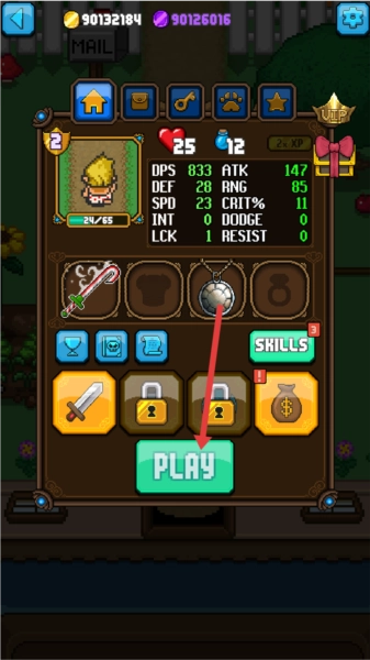 1. 在主界面选定角色后,点击【PLAY】按钮就能开启关卡。