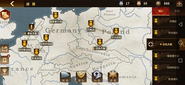 2、玩家要负责管理规模庞大的集团军,借助研发各类科技、招募雇佣援军、发动空袭与空降作战等方式,同时在变化迅速的征服态势里,灵活运用外交手段来选择结盟或是宣战。