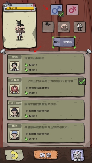 3、开始设置角色的性别和形象,以及角色的职业,不同职业所得到的能力都不一样,设置好后点击确定。