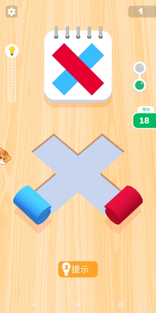 1.如下图所示,进入关卡后玩家需根据画面上方的图案提示,来推动彩色卷纸完成图案的复原。