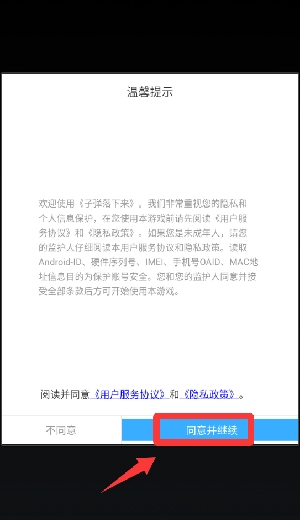1、点击温馨提示里的同意并继续。