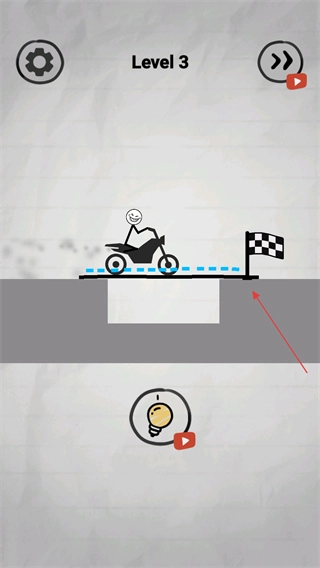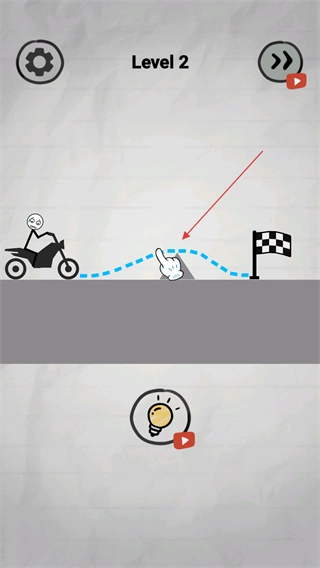 2、精准勾勒线条:按照预先规划好的路线,借助画线工具画出稳固的线条,填补道路上的缺口,保证火柴人驾驶的车辆可以顺利平稳地通行。