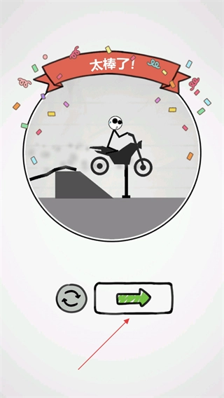 4、通关后界面会出现“太棒了”的动画效果,点击下方绿色箭头按钮,就能进入下一关继续挑战。