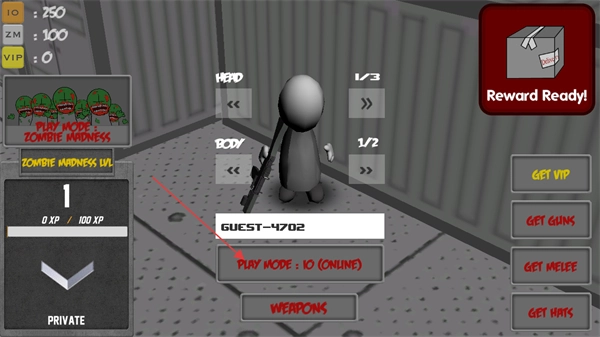 1、在游戏初始界面,点击PLAY按钮即可进入在线游玩模式,在此界面还能查看其他相关玩法以及角色当前的等级进度。