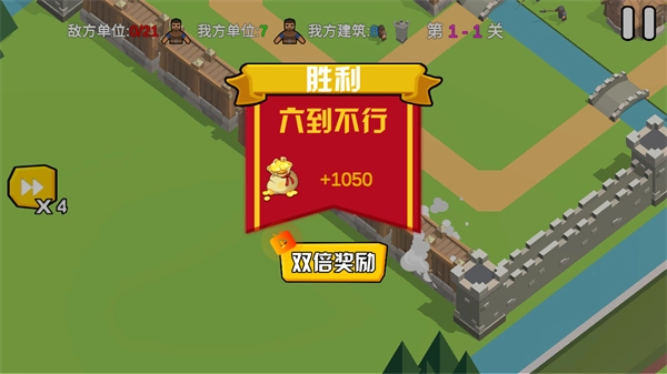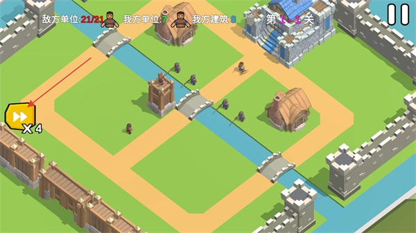 4、进入关卡后点击左侧带X4的按钮,加速推进关卡进程,同时关注敌我单位与建筑的状态变化。