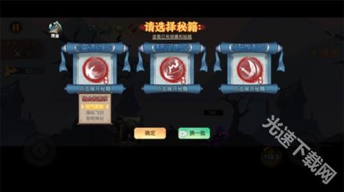 每次通过关卡都可以再次选择一个秘籍,每个秘籍的技能不一样,大家需要好好选择。