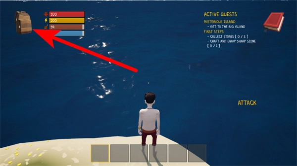 4、回到游戏主界面,查看生存进度,收集场景里的石头等资源,推动任务进度。