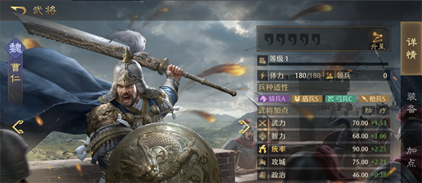 技能:戌守持重、铁壁坚城