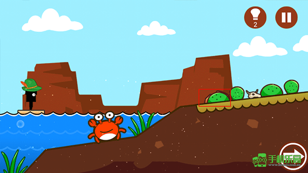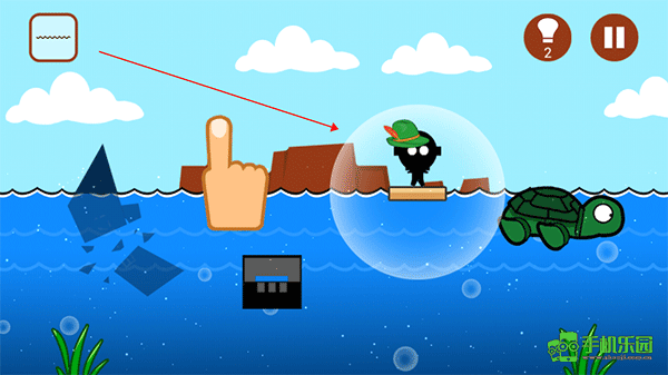 3、拿到绳子后把它套在海龟身上,这样我们就可以跟着海龟上岸完成通关了。