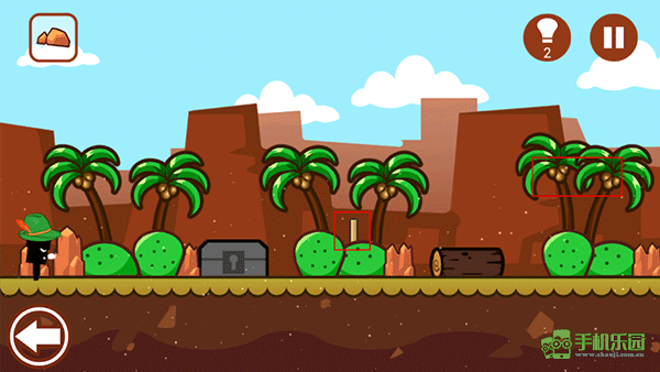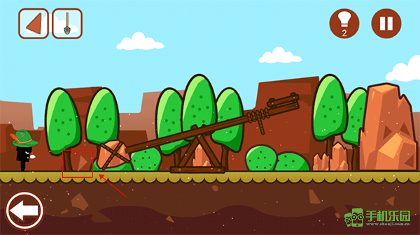 我们在第二棵树的下方和第四棵树上可以获得一个石头和一个碎片,其中我们要点击两下树,才可以获得一个碎片。然后我们将石头放置在跷跷板的另一头,此外,我们可以再最右边的两颗树之间获得一个铲子。我们返回第一个常见,我们使用铲子将地上挖开,我们就可以获得一个碎片了。我们在中间的三颗树木之间可以获得一个斧子,然后我们砍断跷跷板右侧的绳子,石头就会飞出去。过会我们就可以再地上拾起一个碎片了,然后将三个碎片全部的放入到右边的石头上面。这样我们就可以过关了。