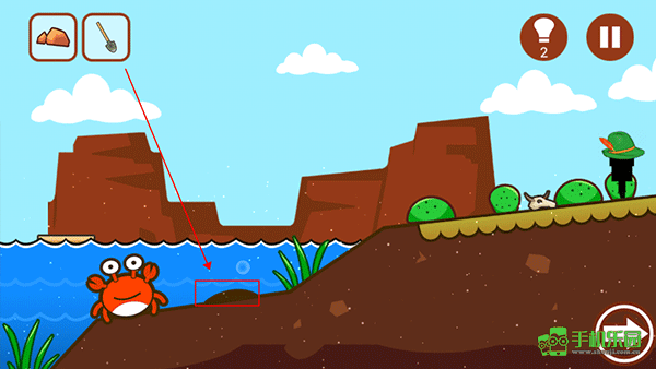 3、把椰子给螃蟹,用锹铲土包,获得钥匙?