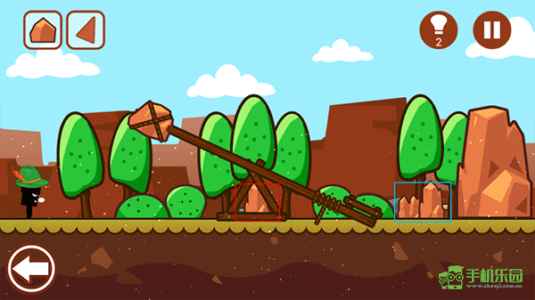 3、石头放这个投石器上,用斧子砍断绳子,获得第二个三角形。