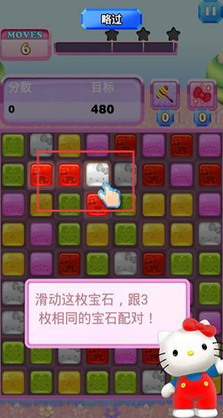 1. 三消核心玩法:滑动屏幕交换图案,当连线三个及以上相同的凯蒂猫元素时,即可触发消除。而且连线越长,解锁的特效道具就越强,像“直线消除”“范围爆炸”之类的。