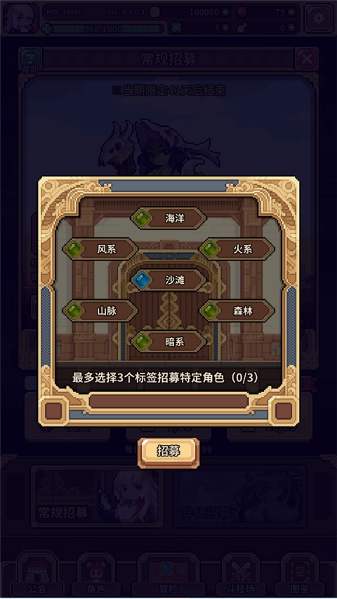 7、招募时最多可以选择3个标签招募角色。