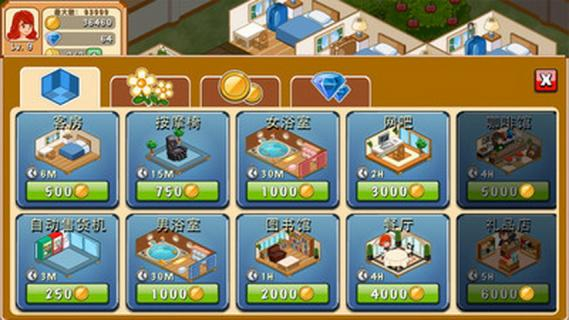 2. 设施选择造价最低的,本人推荐的建造顺序为:自动贩卖机、图书馆、网吧、餐厅、咖啡馆、礼品店、花店。(这些均为初始消费设施,用于过渡阶段,具体种类可根据自身情况自由挑选,此处是以样板号给出的推荐。)