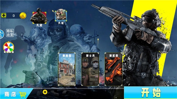 1、启动游戏后,在开始游戏前,你可以先挑选新的地图,也能切换不同类型的士兵,还可以选择不同的武器,等这些都选好之后,再点击开始按钮即可。