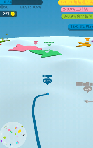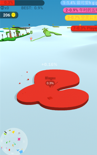2、凭借灵活的走位与策略性操作圈占更大领地,持续扩张你的专属颜色区域,赢得比赛即可收获丰厚奖励。