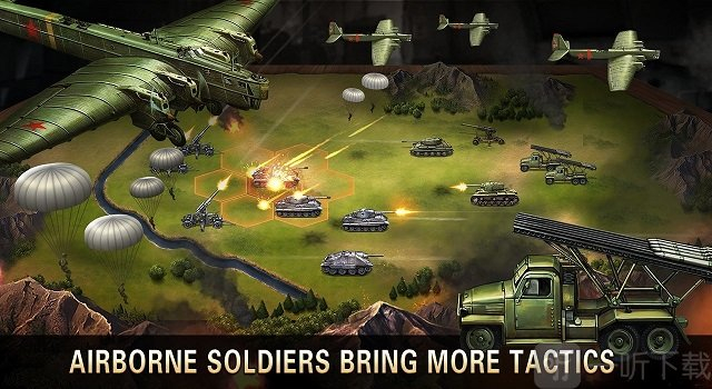 在游戏里,你会和众多名将展开对决,丰富的游戏关卡能为你解锁更多强力兵种,逼真的战场环境与随机天气系统将带来巨大挑战。