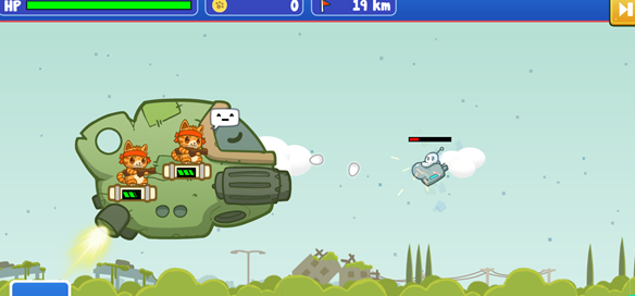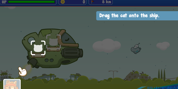 2、把猫拖上船,你的猫咪会自动攻击外星人;