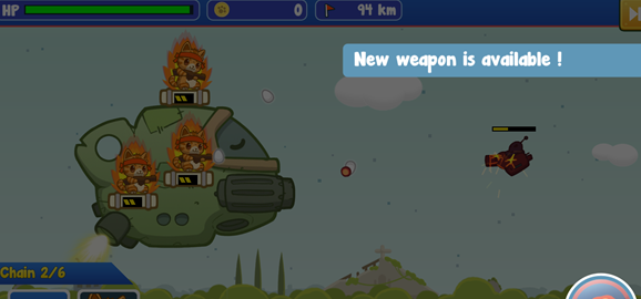 这款游戏采用卡通清新的艺术风格,每一轮关卡都设有对应的任务目标,系统会统计玩家在每一轮中的推进距离。