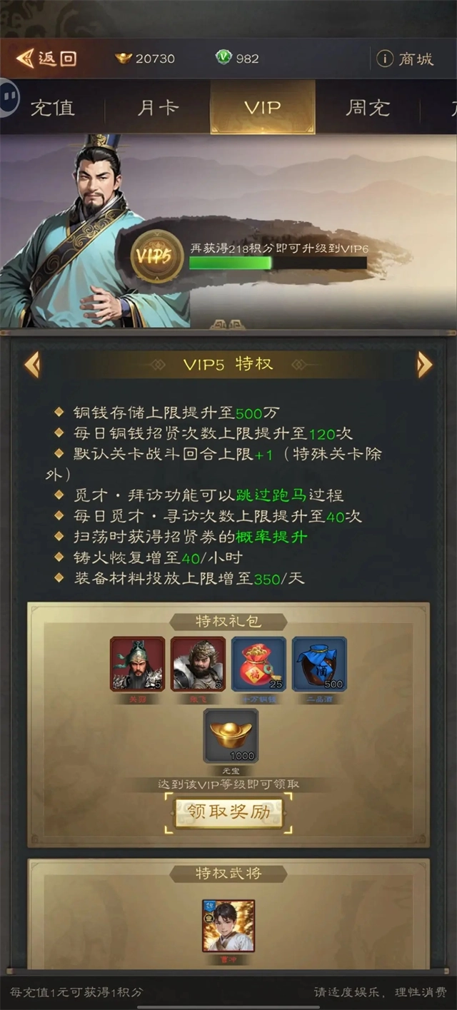 注意:第一天的抽卡券有就用掉,别囤积!要重点提升张飞、关羽、赵云这三位的战力!
