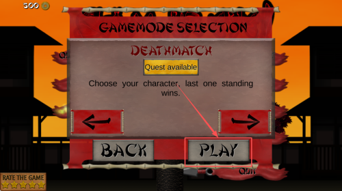 2、游戏模式选择详情:在“GAMEMODE SELECTION”中选定“DEATHMATCH”模式后,点击“PLAY”按钮即可进入角色选择界面。