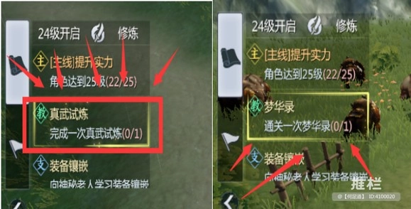 继续推进主线任务后等级会达到22级,此时主线任务暂时没有后续可做,支线中可以参与教学副本相关活动,包括【官府通缉】【真武试炼】和【梦华录】。