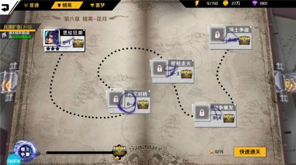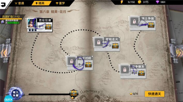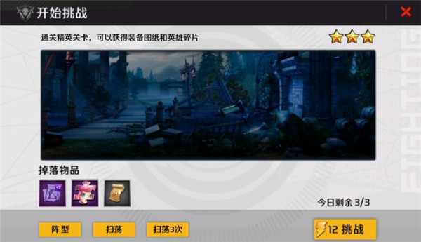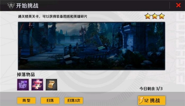 在游戏里挑战精英关卡,至少得准备12点体力才行。另外,每个关卡每天只有3次免费通关的机会,如果想多次玩这个关卡,就得用钻石来重置副本次数。每一个精英关卡都有自己对应的材料掉落,还有满星通关的要求。每个章节都会有需要攒够一定星数才能打开的宝箱,等你满星通过关卡后,就可以直接扫荡这个关卡了。