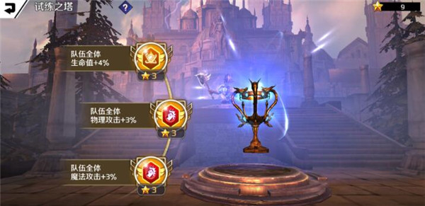 试炼塔的BUFF层会随机提供3种属性选项,建议根据己方阵容特点或下一关怪物属性来挑选合适的BUFF,争取达成3星通关。另外,可使用在挑战层获得的星辰来兑换属性加成,该加成仅在当日的试炼塔挑战中有效。