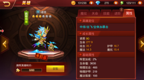 四:凌统(群体前排输出,被动提升暴击效果显著,可担任辅助输出角色)推荐星数:4星