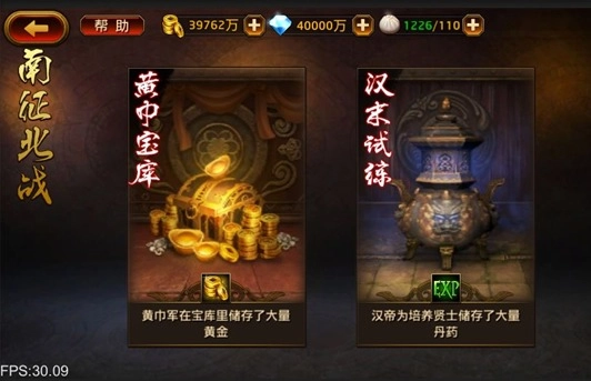 在《南征北战》玩法里,黄巾宝库与汉末试练是游戏内获取金币和经验的关键途径,而南征北战玩法将在玩家等级达到19级时解锁开启。
