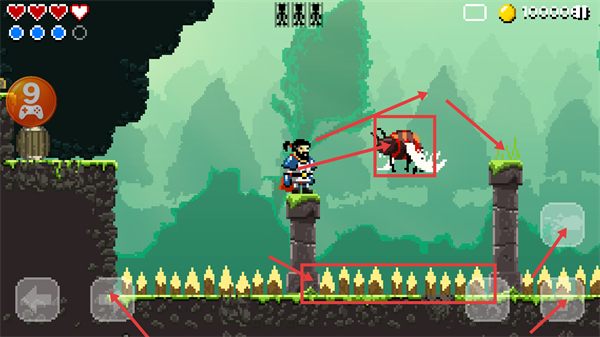 2、遇到【甲虫类敌人】时,通过跳跃键避开它的攻击范围,同时按下攻击键进行输出,以此击败该敌人。