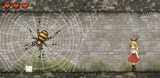 1、首先,玩家操控的安娜会遇到一群小蜘蛛,此时需要让小蜘蛛将她的最后一滴血咬掉。