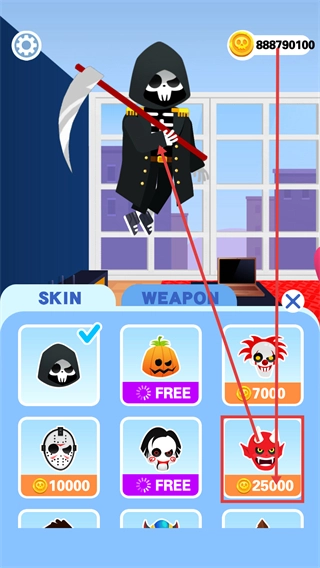 4、开设个性化死神定制专区,备有海量趣味皮肤与自定义选项,玩家可通过多样搭配组合,塑造出独属于自己的特色死神形象。