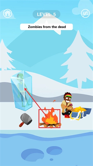 进入【LEVEL-5】关卡后,会触发【Zombies-from-the-dead】剧情,此时需要先通过操作篝火道具来解锁冰封僵尸,以此推进后续流程。
