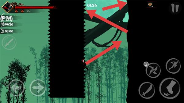 3、使用【←→】方向键操控角色移动,同时结合右侧的技能键来避开障碍,要在【03:00】的限定时间内推进关卡的进度。