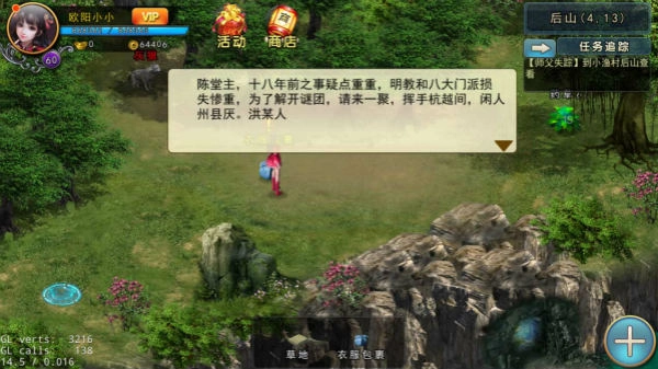 回小渔村调查师父失踪的缘由,进入师父家,发现有明显的打斗痕迹。到小渔村吴掌柜处打听得知师父被黑衣人袭击去了后山。到后山查看,发现有一个衣服包裹,拾起包裹,被黑衣人埋伏,发生战斗,选择打开包裹,会受轻伤;选择不打开包裹,直接和黑衣人发生战斗。打赢了之后发现一封信;打输了之后在沧州的悦来客栈发现黑衣人,发生战斗,打赢了之后发现信。