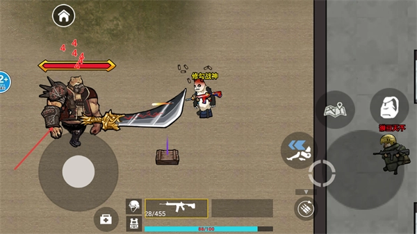 3、遭遇持大剑的强力敌人时,操控修狗用武器持续攻击,逐步消耗其血量,成功击败对手推进冒险。