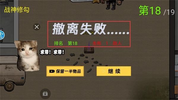 4、撤离失败后出现统计界面,点击继续按钮重新挑战,总结经验优化策略,提升下次撤离成功率。