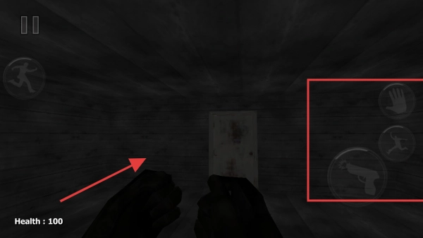 在游戏里借助右侧的操作按钮,像手部、奔跑、手枪这些按钮,来处理场景里的各种状况,同时要留意左上角的血量,保障自身的安全。