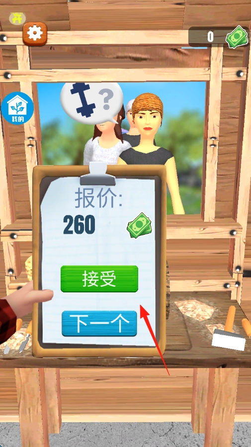 雕刻时,顺着箭头所指的方向挪动凿子,依据轮廓对木料进行精细打磨,达成订单的各项要求,从而获得相应收益。