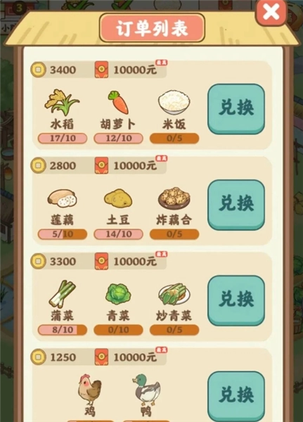2. 查看订单详情:进入订单列表页面,确认每个任务对应的作物类型及具体数量要求(例如:水稻10颗、胡萝卜10颗)。