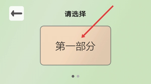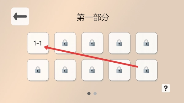 在选择页面,依照红色箭头的指引,点击第一部分的选项,即可进入该部分的关卡列表页面。