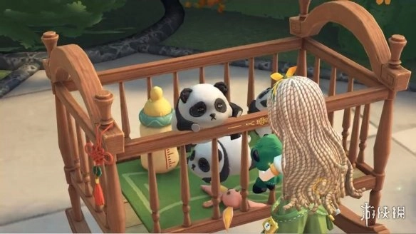 奇珍家具——熊猫摇篮,其外观为木质摇篮模样。三只憨态可掬的大熊猫身处摇篮之中,它们的神态举止各不相同。其中一只爬上了围栏,仿佛正准备上演一出“越狱”好戏;另一只安静地坐在摇篮里,悠然地观赏着外面的景致;还有一只则完全趴在那儿,惬意地享受着慵懒的回笼觉。玩家们能够与这摇篮展开互动,晃动摇篮逗逗大熊猫,或是和它们一同玩游戏。只要你一回到归宿,保准能快速转换心情,充满快乐!