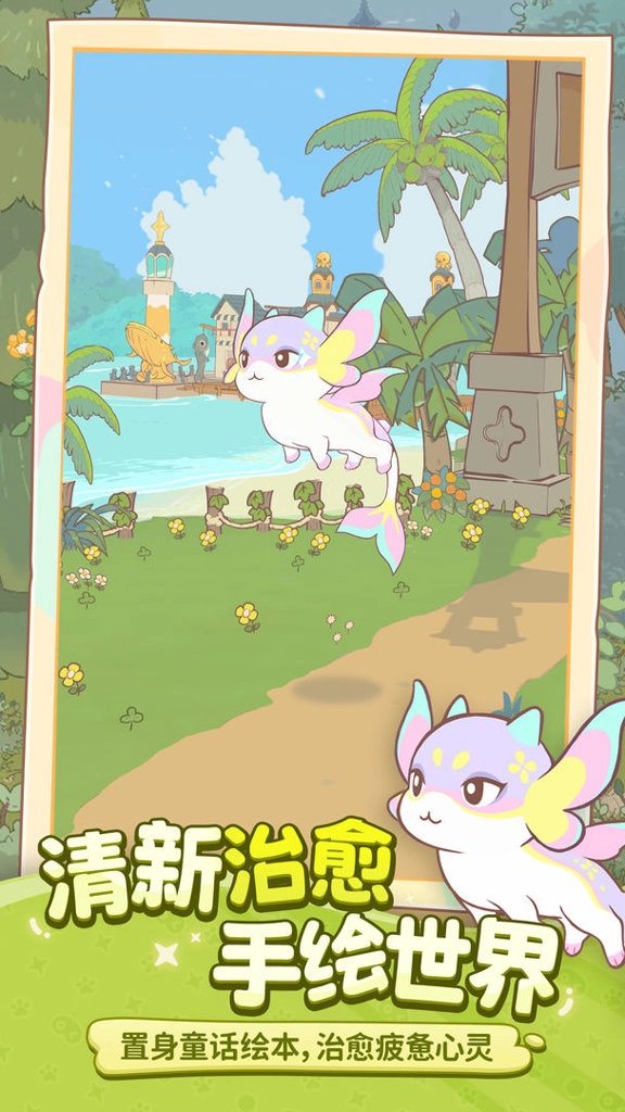 独特的美术风格:游戏采用卡通手绘美术风格,整体画面呈现出浓郁的童话绘本质感。场景设计精美,色彩柔和,线条灵动,为玩家营造了一个温馨治愈的游戏世界。