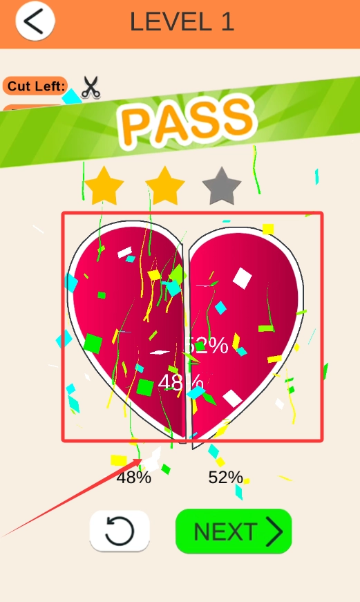 3,进入之后,就可以开始切割了,要留意观察是否对称,越对称的话分数会越高哦。
