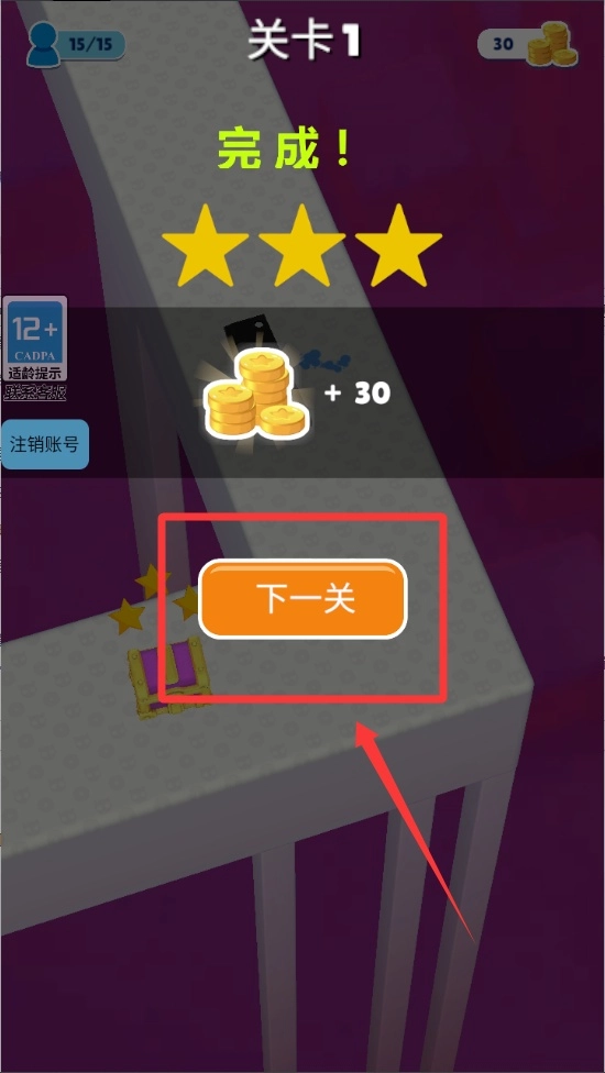 当成功抵挡住所有敌人的攻势后,屏幕上会出现通关的提示信息以及星级评价。此时点击界面右下角正在闪烁的“下一关”按钮,就能开启难度更高、更富挑战性的全新关卡。