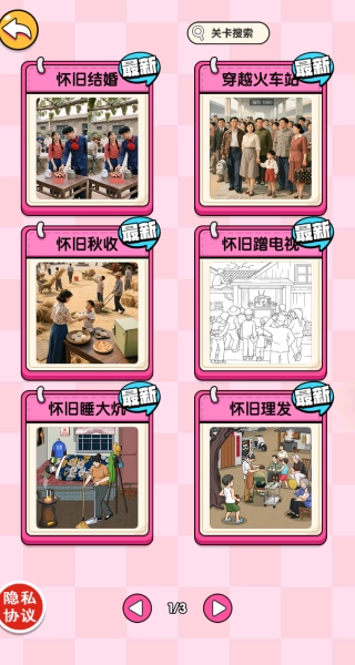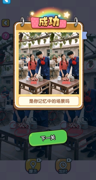 2、从怀旧结婚、穿越火车站、怀旧秋收等多元主题关卡中,挑选心仪场景开启游戏,感受不同风格的找茬乐趣。