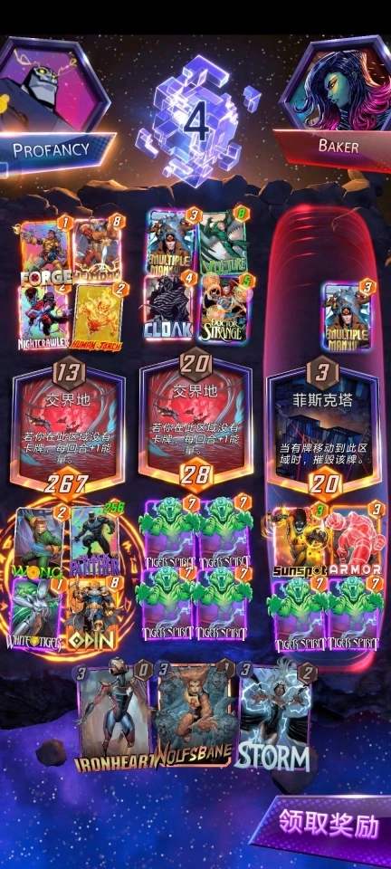我没有选择换牌来应对保护机制,主要是考虑到齐尔蒙格的出场率较低,通常只在主打撕牌(吞噬)的卡组里出现。这类卡组在1、2池的强度不算顶尖,只要控制好1费牌的打出数量,3费之后依靠自己的大点数组合技,依然有获胜的机会,胜率大概在四六开或三七开。而且提前撤退只会扣除一半分数,对冲击排名的影响不大。这正是我欣赏SNAP机制策略魅力的地方——只要策略得当,就能在一定程度上缓解卡组克制带来的问题。