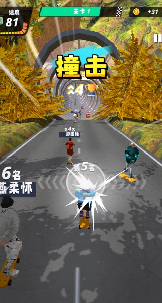 3、遭遇其他对手时,可主动发起撞击,干扰对方节奏,凭借技巧与策略抢占有利滑行位置。